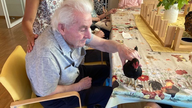 Der Juli überraschte uns mit wenig Sonnenschein, vor allem in der zweiten Monatshälfte. Umso mehr sorgten im APH Spiele und tierische Besucher für fröhliche Abwechslung. Zum zweiten Mal durften wir Therapiehunde begrüssen, die mit ihrer freundlichen Art alle Herzen eroberten. Zudem brachte Karin Kälin von tiere-im-heim.ch Hühner und Meerschweinchen mit, die bei unseren Bewohnerinnen und Bewohnern für Begeisterung sorgten. Unsere Katze Minka lebte ganz nach ihrem eigenen Motto: „Draussen kühl und nass – ich bleibe drinnen im Warmen.“ So fand jeder auf seine Weise Freude in diesen verregneten Tagen und machte das Beste daraus.