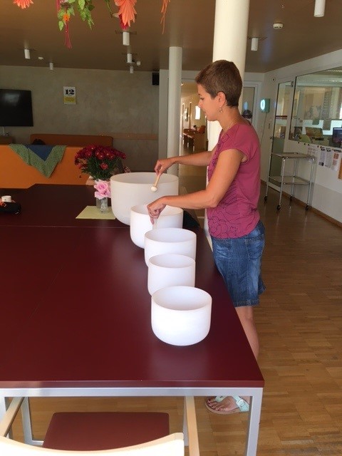 Ein besonderes Highlight war Patricia Imhof, die mit ihren Kristall-Klangschalen zauberhafte Klänge erzeugte, die vor allem unsere weiblichen Bewohnerinnen verzauberten.